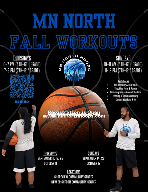 Join our 1-hour Fall Basketball Workouts and become part of our MN North Hoops Mentorship Program.